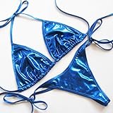 「熱視線ドキドキ☆目立つブルーメタリックビーチ姫Tバック三角ビキニ水着/青」です。